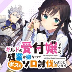 Manga Guild no Uketsukejou Desu ga, Zangyou wa Iya Nanode Boss wo Solo Toubatsu Shiyou to Omoimasu yang dibuat oleh komikus bernama Kousaka Mato ini bercerita tentang Pekerjaan ini aman karena pekerjaan di atas meja, stabil karena pekerjaan publik. Tapi apa yang menanti Alina yang menjadi resepsionis guild jauh dari ekspektasinya. Dan semua itu di karenakan petualang yang tidak mampu menaklukan dungeon! Telah mencapai batasnya, Alina akhirnya pergi untuk mengalahkan boss sendiri, dengan palu di tangannya….