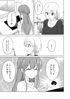 Manga The girl who thinks she’s a NEET and the girl who absolutely doesn’t want her to know yang dibuat oleh komikus bernama KIYU Fuyuki ini bercerita tentang Gadis yang Mengira Dia NEET dan Gadis yang Sama Sekali Tidak Ingin Dia Tahu